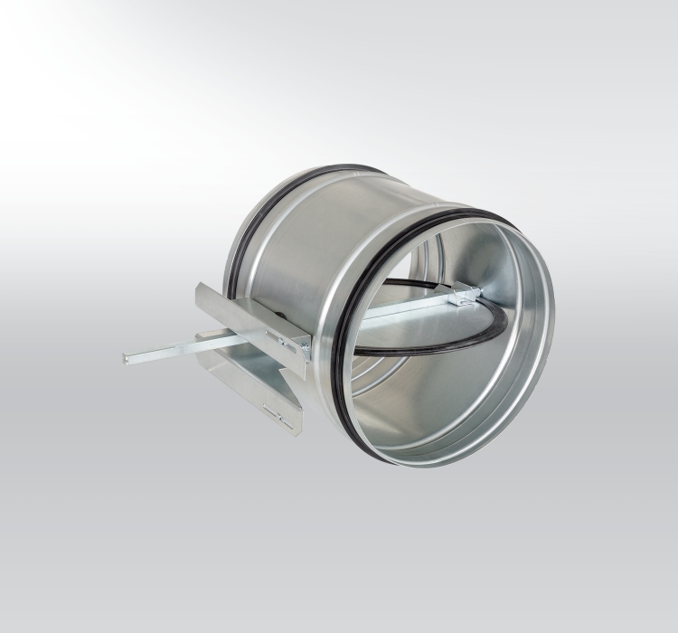 RKKTM-DK – The Round tight regulation damper regulates airflow or tightly shuts circular ducts by constricting the cross section.The blades are fitted with silicone seals.