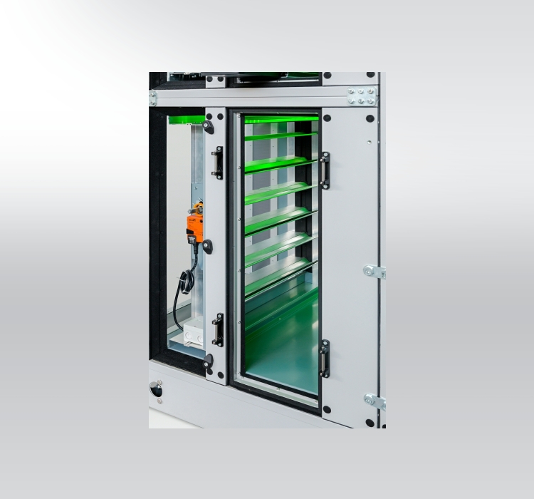 - certification according to the requirements of the German Association of RLT Equipment Manufacturers and the possibility of designing in energy classes up to A + and displaying the energy label by a certified German company TÜV SÜD Industrie Service GmbH