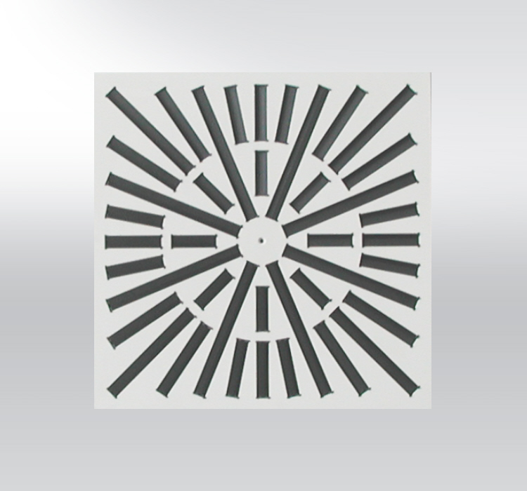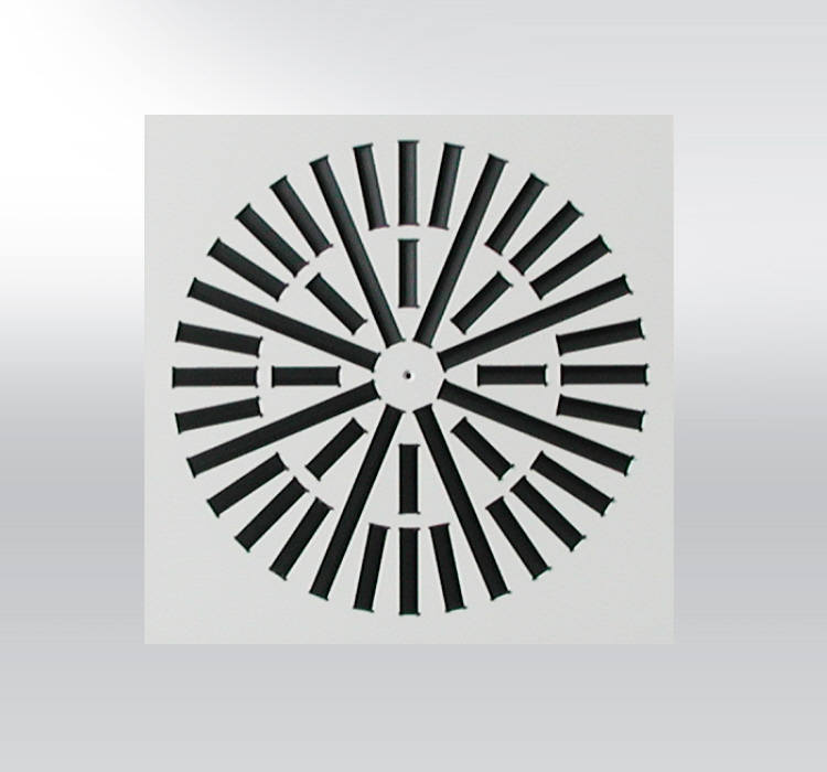 VVDM – Whirling air outflow outlet with manually adjustable blades for diversion of airflow. This is an end HVAC element for air distribution enabling optimum direction of outflow as needed depending on the air-conditioned or ventilated spaces. The whirling air outflow ensures intensive mixing with the existing air.