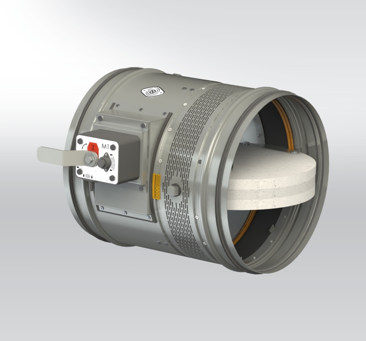 FDMR 180 – Een brandklep is een afsluiter in het kanalensysteem van een luchtbehandelingsinstallatie, die de verspreiding van brand en verbrandingsproducten van het ene brandcompartiment naar de andere voorkomt door het luchtkanaal af te sluiten.