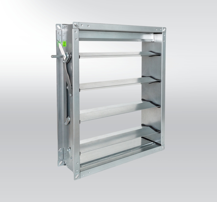 RDM – Lamelová regulační klapka reguluje průtok vzduchu v potrubí systémů vytápění, vzduchotechniky a klimatizace tím, že mění efektivní světlý průřez pomocí protiběžných listů.
